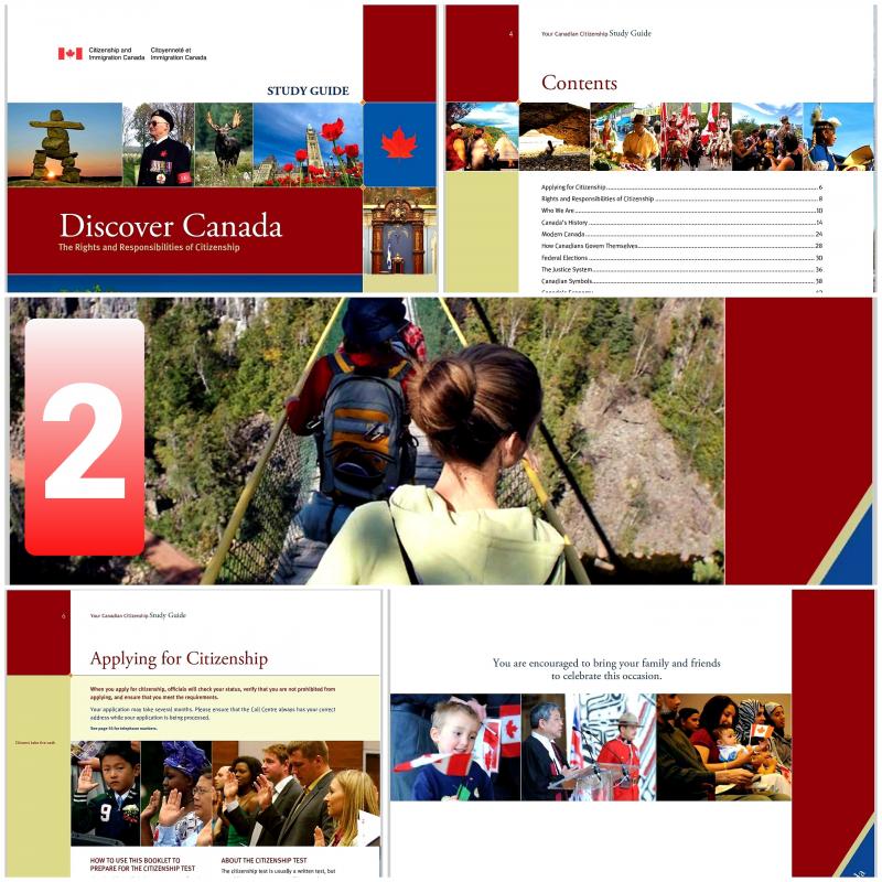 تنويه مهم: تجاوزاً تمت ترجمة كتاب Discover Canada بالعربية بهدف مساعدة من لديه ضعف بالإنكليزية أو الفرنسية لاستيعاب مقرر الجنسية عند الحاجة، (ولا ننسى أن من واجب المتقدمين للجنسية أن يكون لديهم معرفة كافية بإحدى اللغتين الإنكليزية أو الفرنسية). لا شك أن الترجمة تساعد وهي حل أخير، ولكن لا تغني أبداً عن قراءة ودراسة الكتاب باللغة الإنكليزية أو الفرنسية لأن الاختبار بالنهاية لن يكون بالعربية.