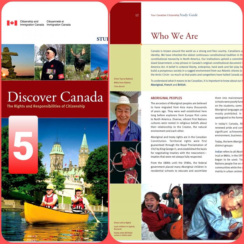 تنويه مهم: تجاوزاً تمت ترجمة كتاب Discover Canada بالعربية بهدف مساعدة من لديه ضعف بالإنكليزية أو الفرنسية لاستيعاب مقرر الجنسية عند الحاجة، (ولا ننسى أن من واجب المتقدمين للجنسية أن يكون لديهم معرفة كافية بإحدى اللغتين الإنكليزية أو الفرنسية). لا شك أن الترجمة تساعد وهي حل أخير، ولكن لا تغني أبداً عن قراءة ودراسة الكتاب باللغة الإنكليزية أو الفرنسية لأن الاختبار بالنهاية لن يكون بالعربية.