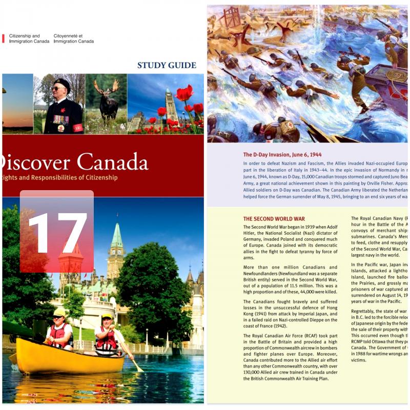 تنويه مهم: تجاوزاً تمت ترجمة كتاب Discover Canada بالعربية بهدف مساعدة من لديه ضعف بالإنكليزية أو الفرنسية لاستيعاب مقرر الجنسية عند الحاجة، (ولا ننسى أن من واجب المتقدمين للجنسية أن يكون لديهم معرفة كافية بإحدى اللغتين الإنكليزية أو الفرنسية). لا شك أن الترجمة تساعد وهي حل أخير، ولكن لا تغني أبداً عن قراءة ودراسة الكتاب باللغة الإنكليزية أو الفرنسية لأن الاختبار بالنهاية لن يكون بالعربية.
