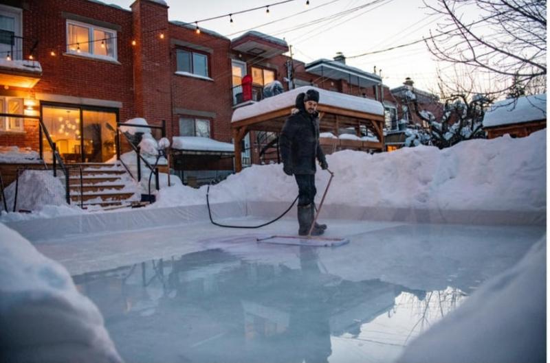 تُقام حلبات التزلج الجليديّة الكندية في الفناء الخلفي للمنازل، وبات هذا الطقس تقليد شتوي تزاوله العديد من العائلات الكنديّة، ومع جائحة كورونا والإجراءات الصارمة في التنقل أصبحت هذه الحلبات متنفساً مهمّاً للناس من هذه القيود.