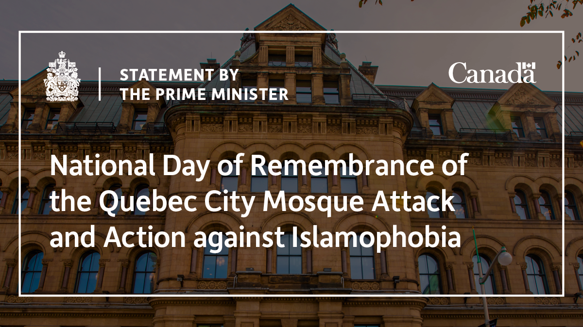 The Prime Minister, Justin Trudeau, today issued the following statement on the National Day of Remembrance of the Quebec City Mosque Attack and Action against Islamophobia:
