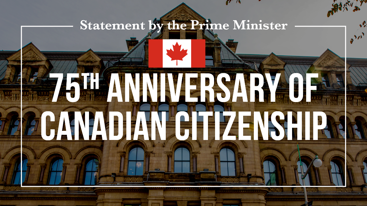 "منذ خمسة وسبعين عامًا اليوم ، أصبح قانون الجنسية الكندية قانونًا ، إيذانًا ببدء المواطنة الكندية كحالة قانونية. أسست هذه اللحظة التاريخية من كان - ومن يمكن أن يصبح - مواطنًا كنديًا ، ووقفت كتعبير مهم عن الهوية الوطنية لبلدنا.